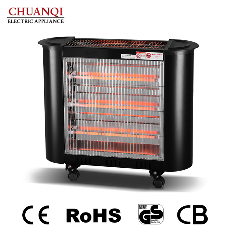 Cixi Chuanqi எலக்ட்ரிக்கல் அப்ளையன்ஸ் ஃபேக்டரியில் இருந்து 2000W 4 டியூப்ஸ் குவார்ட்ஸ் ஹீட்டரை மறைக்கப்பட்ட சுவிட்ச் அறிமுகப்படுத்துகிறது. இந்த ஹீட்டர் இரட்டை பக்க வெப்பத்தை கொண்டுள்ளது, இதில் இணையற்ற வெப்பத்திற்காக நான்கு குவார்ட்ஸ் குழாய்கள் உள்ளன. மறைக்கப்பட்ட பின்புற சுவிட்ச் மற்றும் வசதியான கால் காஸ்டர்கள் உள்ளிட்ட நேர்த்தியான வடிவமைப்புடன், இது செயல்பாடு மற்றும் பாணி இரண்டையும் வழங்குகிறது. உயர்தர மற்றும் மொத்த விற்பனை விருப்பங்களை வழங்கும் குவார்ட்ஸ் ஹீட்டர் உற்பத்தியாளர்களை நாடும் வாங்குபவர்களுக்கு ஏற்றது.